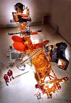 Miss Camp’s sister-in-law, the rocket scientist who visited Camp Linus in December, e-mailed us this week to let us know about the launch of the Titan 4 (the rocket she helps to launch) on Tuesday. She linked us to an article on the Internet that had pictures of the launch. We learned that the rocket brought another satellite into space so that it could orbit around the Earth. (see picture of satellite to right)