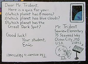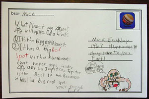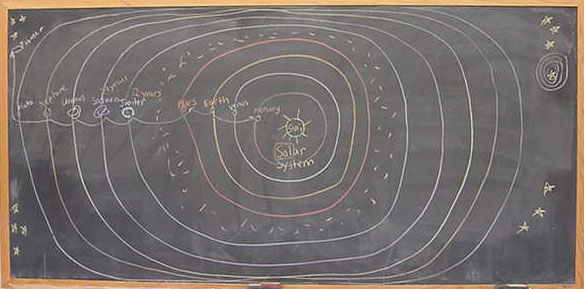 We began by looking at the orbits of the planets. We learned that it takes Jupiter 12 Earth years to orbit the Sun. That means a third grader would be about 20 or 21 years old by the time it takes Jupiter to get all the way around the sun and back to where it is today!