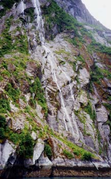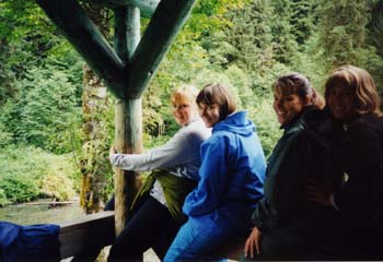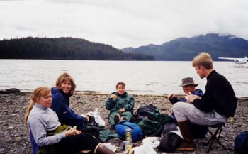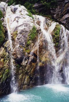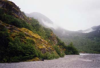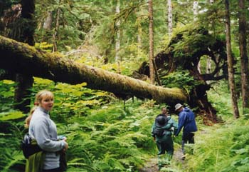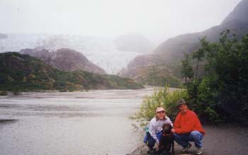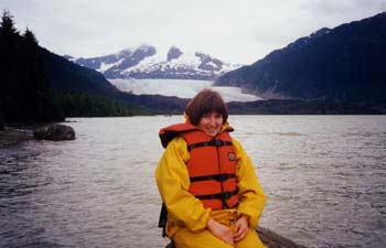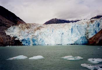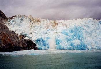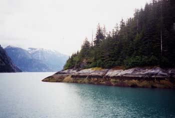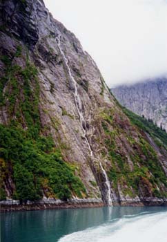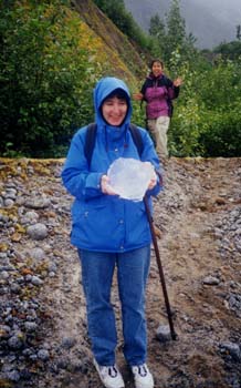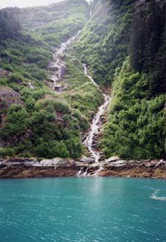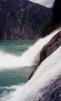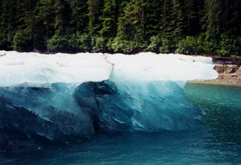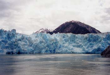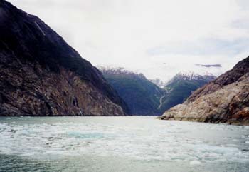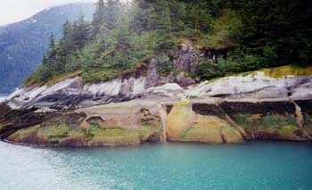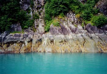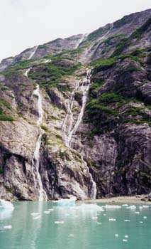 That means it is receding at an alarming rate. While the South Sawyer Glacier is only receding at the rate of a couple hundred feet per year, the North Sawyer Glacier is receding at the rate of a couple hundred yards per year. That’s over a mile in just 10 years. Lissa pointed out to us where the edge of the glacier had been back in 1988, just 12 years ago, and it was a long way from where it is now! When part of the front of the glacier falls off into the water, it is called “calving off.” Even though both the North and South Sawyer Glaciers are melting, or calving off, at the same rate, the South Sawyer Glacier is being fed more ice from behind than the North one is. The temperature at the South Sawyer is colder, and it gets more snow. The earth cycles of global warming and global cooling have naturally taken place every 10,000 years or so (if I understand that right), and so it is not alarming that glaciers are receding. But it is known that humans are making global warming worse than is natural, and it is not known if that is irreversible.