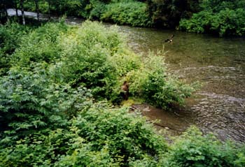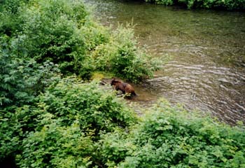 - The part of Stephens Passage in which we traveled was between the mainland and the eastern shore of Admiralty Island. Admiralty Island is so big that we would turn into the Tracy Arm Fjord before we got the tip of it. Admiralty Island is where I was last weekend watching the bears go fishing for salmon. The Island is 1600 or 1700 square miles, and has 1600 or 1700 brown bears! One per square mile. There are 400 people on the island, so the ration is about 4 bears to one human! In other words, bears rule the island and are respected. They were there first. The 400 Tlingit people live in the village of Angoon. Archaeologists have determined that people lived in Angoon 3500 years ago. They found a cedar basket that was stuck in a stream bed for all that time. It had never been exposed to air. It still hasn’t been. A scraping from the basket was carbon dated to be 3500 years old. The first villages in Southeast Alaska were about 6000 years ago, and the last ice age ended about 10,000 years ago.