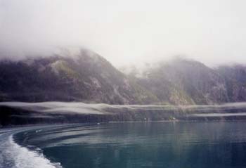 As we head back along the Tracy Arm Fjord, there begins to be these long horizontal wisps of smoke twining through the